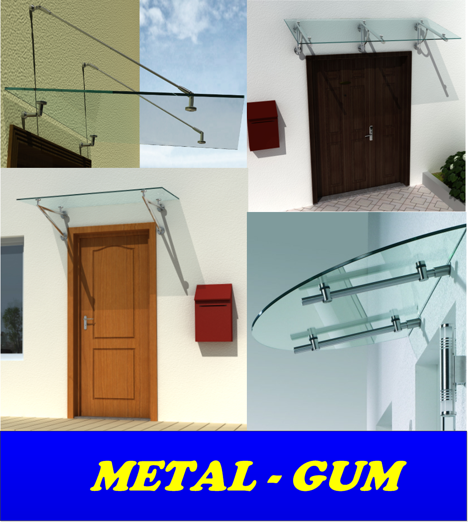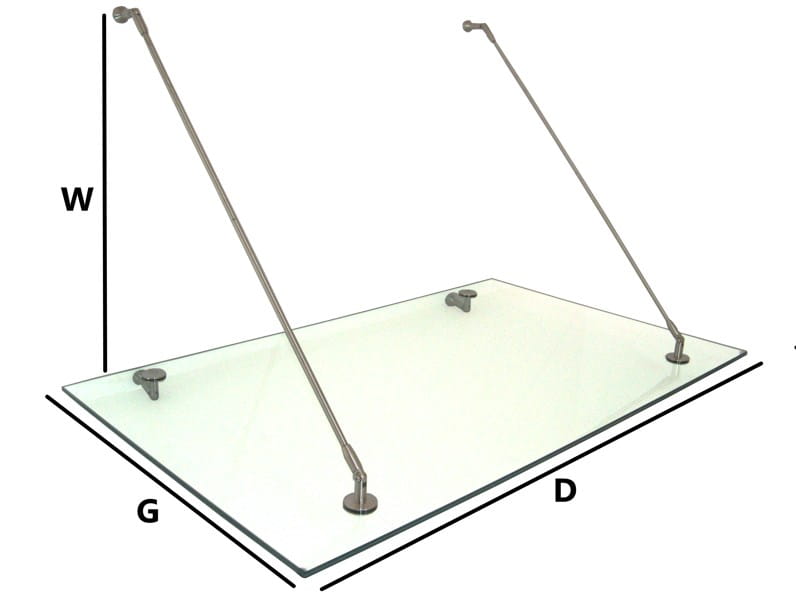 Zadaszenie składa się z zestawu wsporników ze stali nierdzewnej o bardzo wysokiej, jakości i wytrzymałości w kolorze satynowym, szyby ze szkła hartowanego dodatkowo wzmocnionego, kotew do montażu daszka do ściany. W przypadku montowania daszku na siane ocieplona styropianem istnieje możliwość zakupu kotew o większej długości.